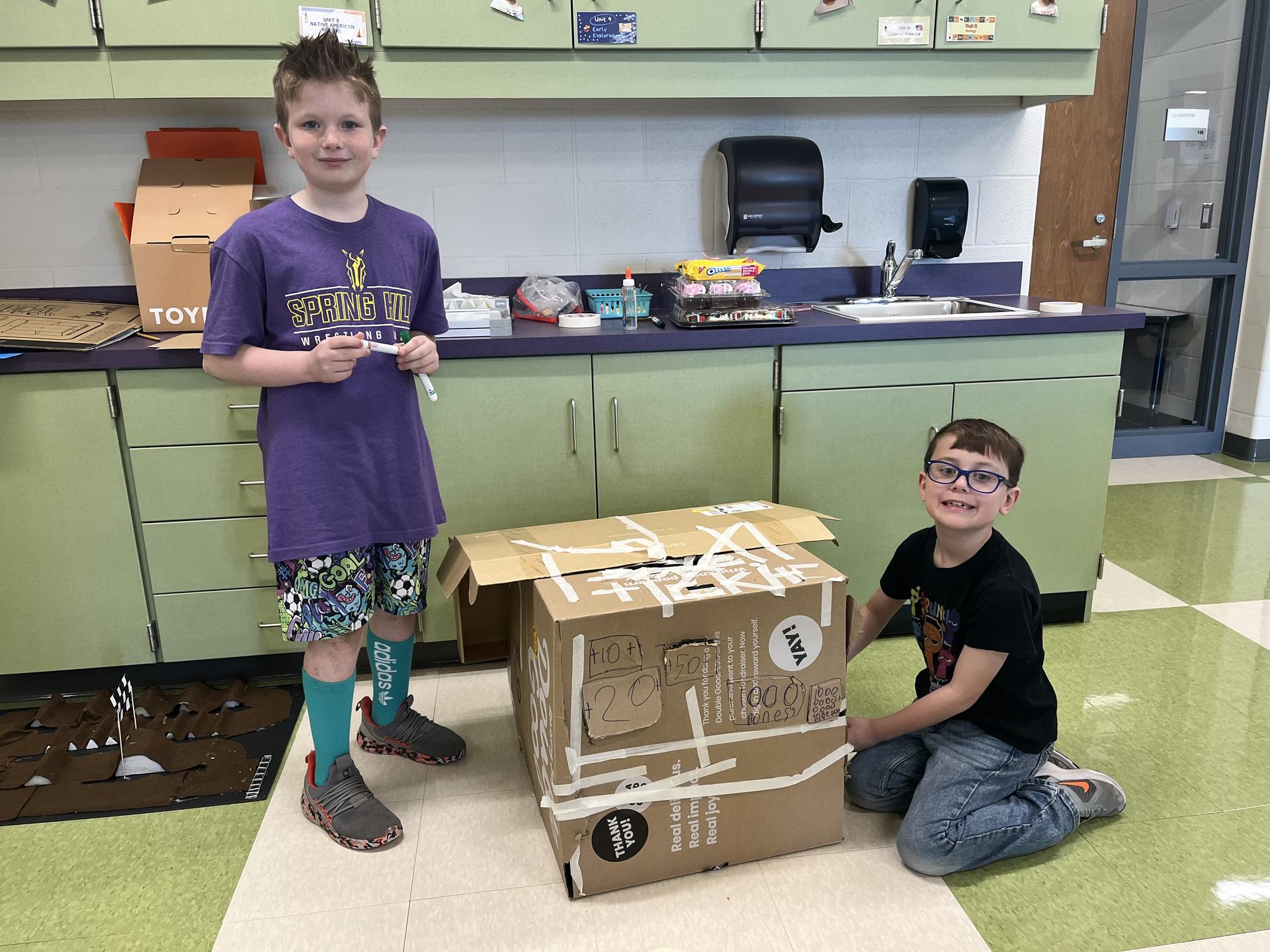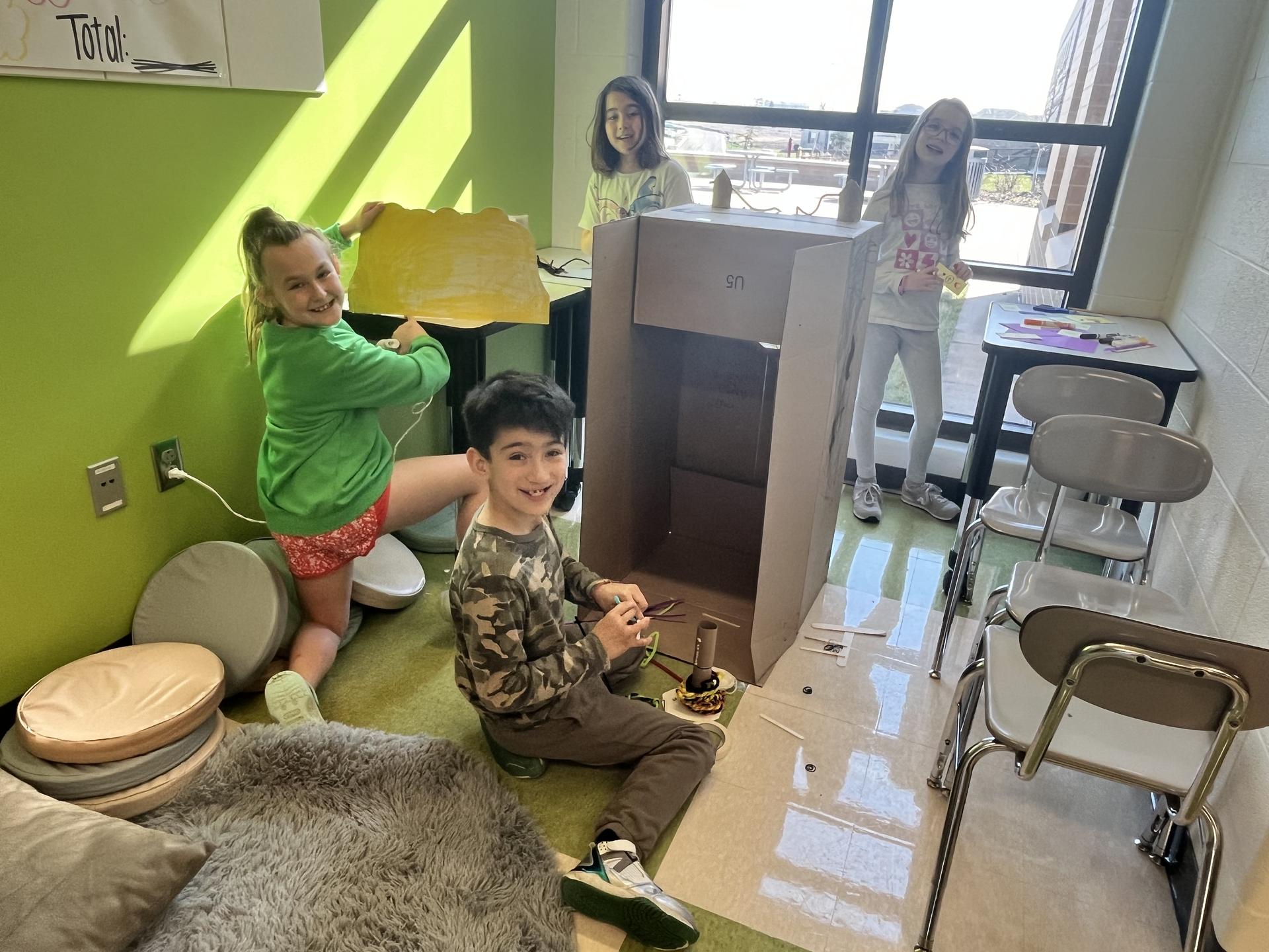 Empowered To Engage: Our 3rd Graders collaborating and problem-solving as they construct their cardboard arcade games for STEM.