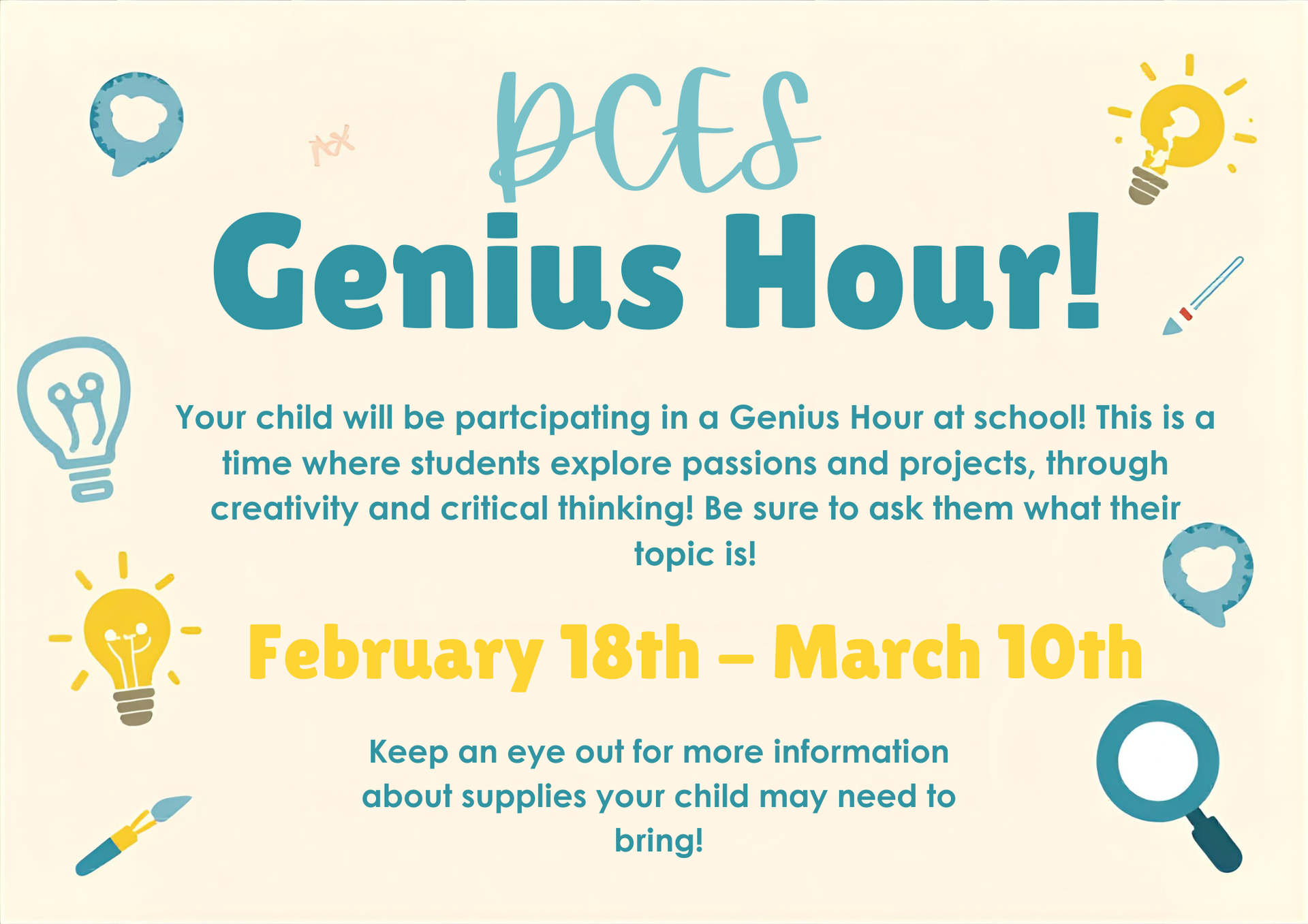 - Thursday, February 26: DCES Site Council Meeting at 4PM