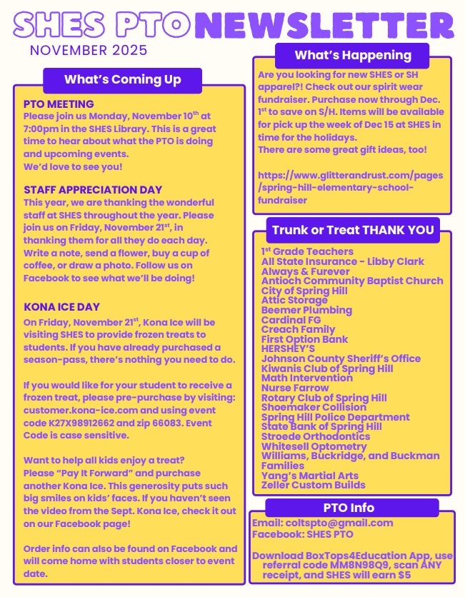 - Veteran's Day Celebration @ 8:00 AM in the SHES gym