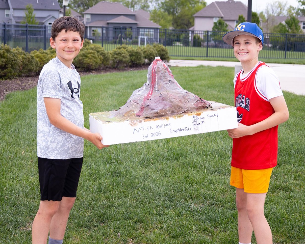 Jackson and Kellan, 3rd graders at Timber Sage Elementary, built this papier-mache volcano from start to finish.