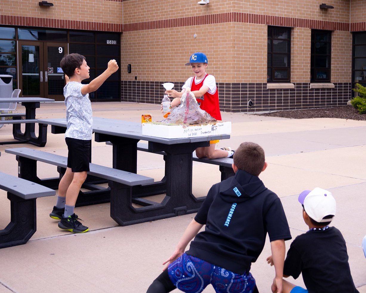 They researched volcano types, learned about different chemical reactions involved in eruptions, and even created a demo video comparing an “OG eruption” to elephant toothpaste. Then they had their classmates vote on which reaction to use.