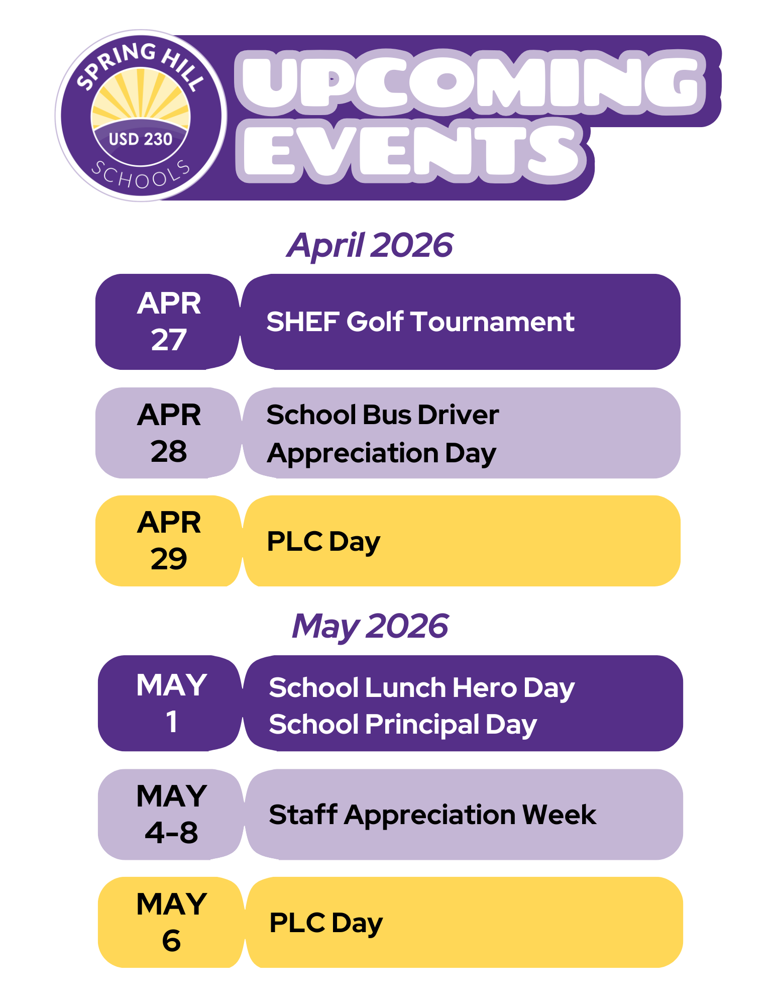 After today, only nineteen (19) attendance days remain for students as our school year is set to conclude on Thursday, May 21, 2026. I’ll definitely write at least 1 if not 2 additional “Link’d in” editions between now and the conclusion of our school year. If you happen to see me out and about in the next few weeks at one of our many events, please say HELLO.